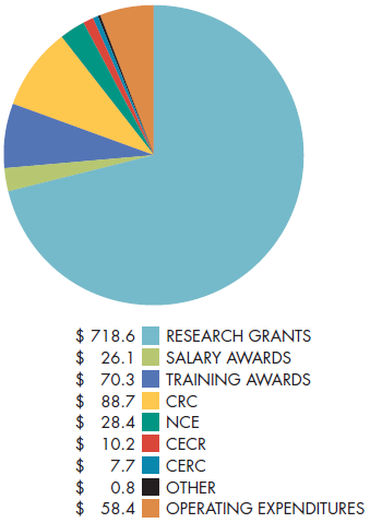 - Includes the Canada Research Chairs (CRC), Canada Excellence Research Chairs (CERC), Networks of Centres of Excellence (NCE) and Centres of Excellence for Commercialization and Research (CECR) programs.