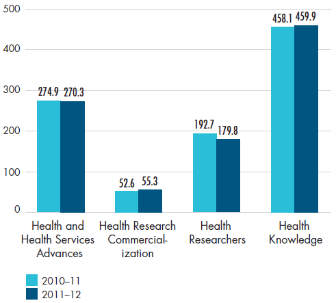 - Recognition of $3.3M of additional revenues in 2011–12, whereby CIHR disbursed funds on behalf of external parties to fund additional health research grants and awards, resulting in a decreased liability of $1.2M;