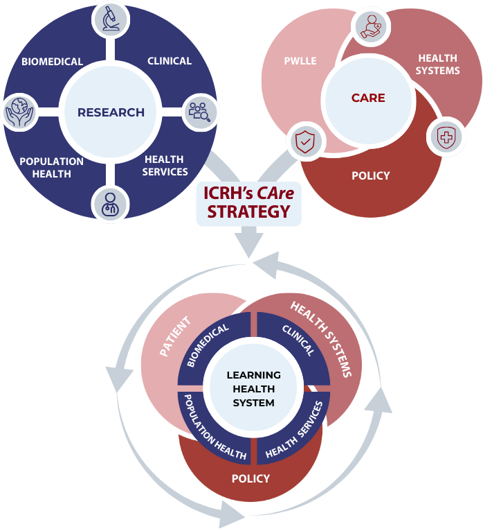 ICRH aspires to support a dynamic learning health system in which research serves as the foundation, integrating meaningful engagement with People with Lived and Living Experience (PWLLE), and embedding patient and health systems' data and knowledge. By actively engaging policymakers and decision-makers, this concept will drive sustainable, evidence-based improvements across the continuum of care.