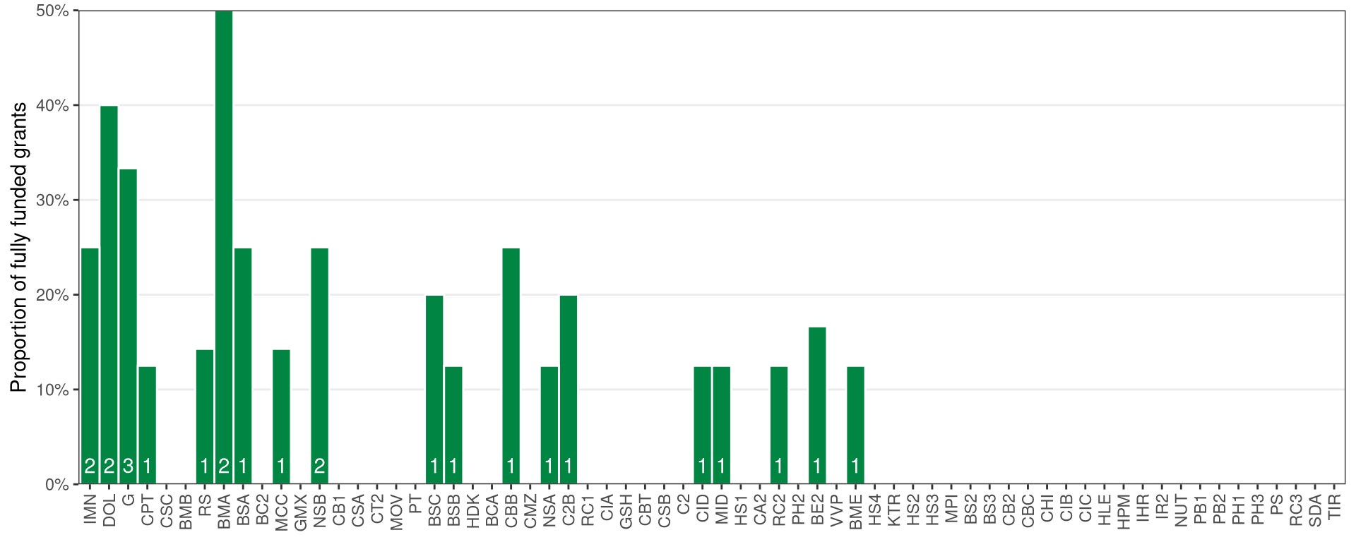 | PRC | Proportion of fully funded grants awarded to past Foundation grant holders (%) | Number of fully funded past Foundation grant holders |