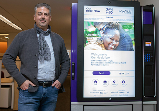 Le Dr Rourke et son équipe démocratisent aussi les tests de dépistage par des programmes et des partenariats sur le terrain. Le distributeur automatique Our Healthbox en est un exemple, lui qui distribue gratuitement des trousses de test personnel pour le VIH, du matériel de prévention et des produits de soins personnels. En octobre 2025, le Dr Rourke a participé au lancement du programme au sein de la nation Piikani en Alberta, l’une des 20 communautés (Territoires du Nord-Ouest inclus) qui bénéficient maintenant de ces technologies d’intervention. Ce sont plus de 14 800 personnes qui ont bénéficié de 80 000 produits de santé et de bien-être des distributeurs, dont plus de 3 700 trousses de naloxone et de 1 700 tests de dépistage personnels du VIH.
