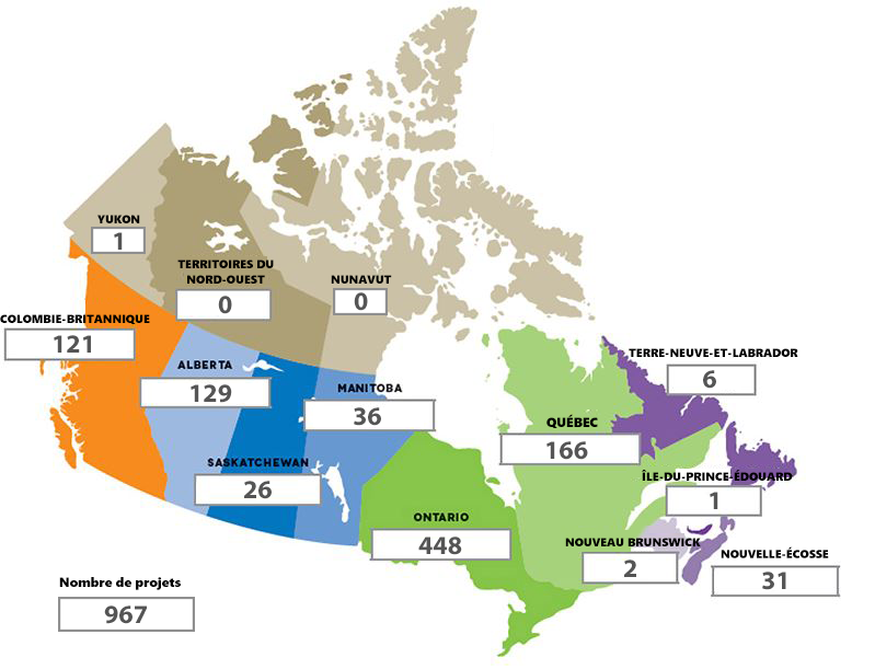 | Province/territoire | Nombre de projets |